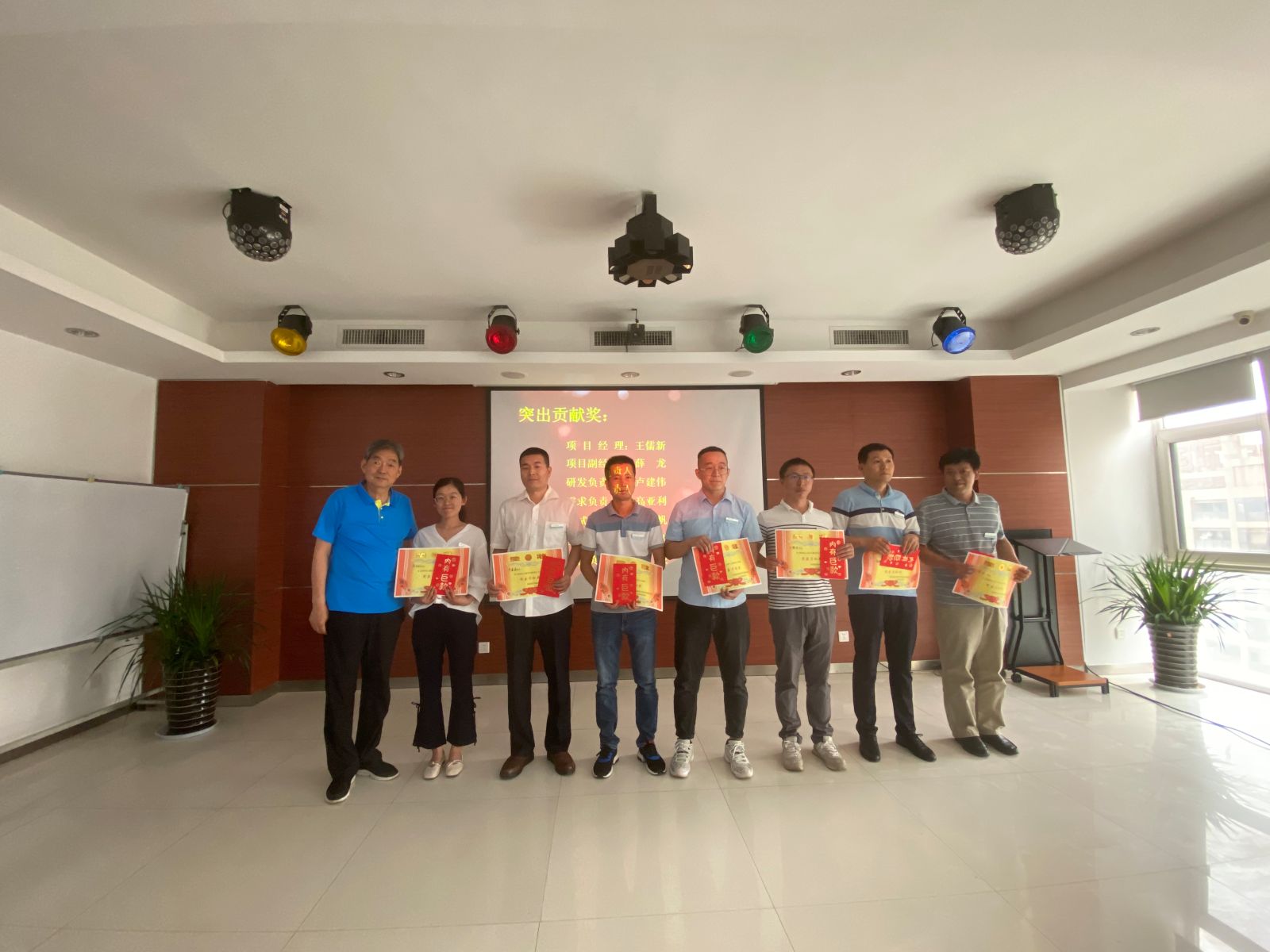 培训结束后,公司很荣幸邀请吴老师为公司“陕焦无人值守计量项目”推进过程中表现优异,做出突出奉献的成员进行了颁奖和鼓励。
